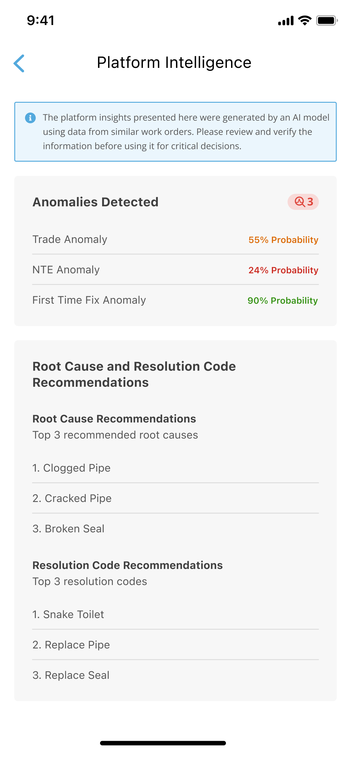 - Act immediately: Insights appear directly on the work order, so you and your providers can take action quickly.