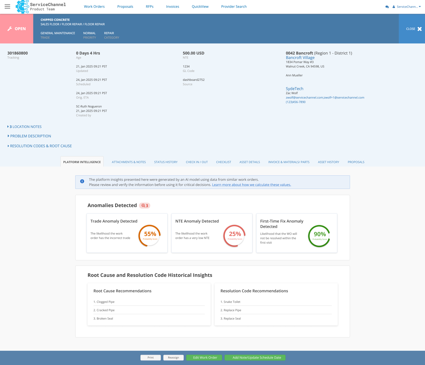 - Spot issues early: ServiceChannel AI scores each work order to flag potential problems before they escalate.
