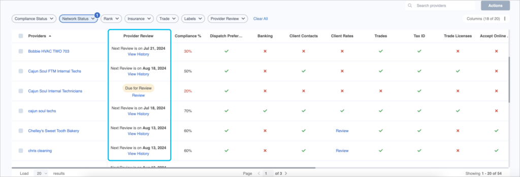 When onboarding new providers, validate their performance early on using your Contractor Scorecard. Filter and compare their performance against your existing network to ensure they meet your expectations.