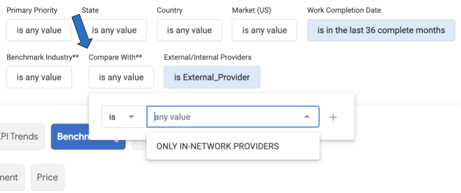 3. Benchmark performance: Use the Benchmarking tab to compare provider performance against industry standards or all providers on the platform.