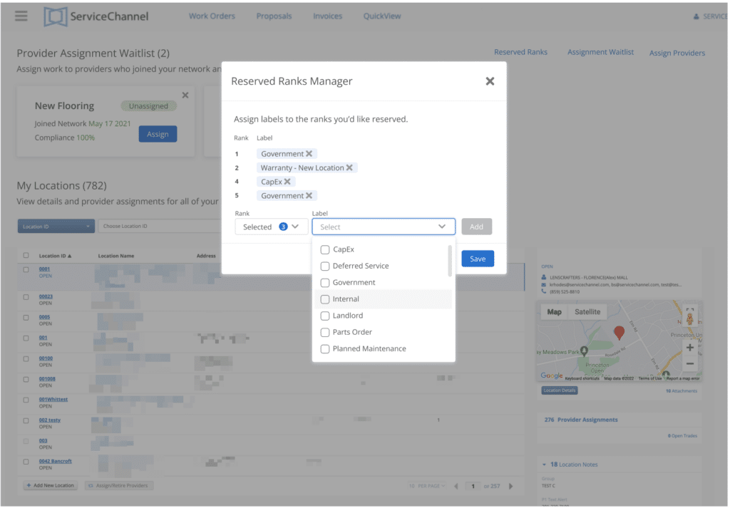 - Then, select the correct locations for each trade to easily switch your provider assignments.