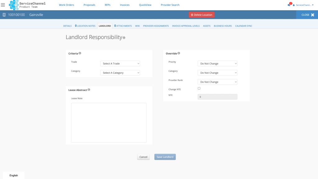 To get started, go to the Locations & Provider Assignments page > select a location > click on the new Landlord tab. To edit landlord responsibilities, users need the Location Admin role.