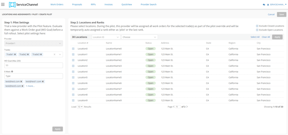 Just set the number of work orders the new provider should receive during the pilot (we recommend a minimum of 10 work orders within 3 months). They’ll be automatically assigned during that period, so you don’t need to manually change your assignments before and after each test.