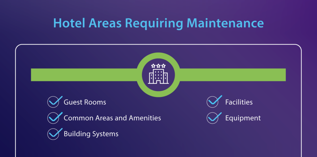 Maintenance is vital throughout the hotel and especially in customer-facing areas, including: