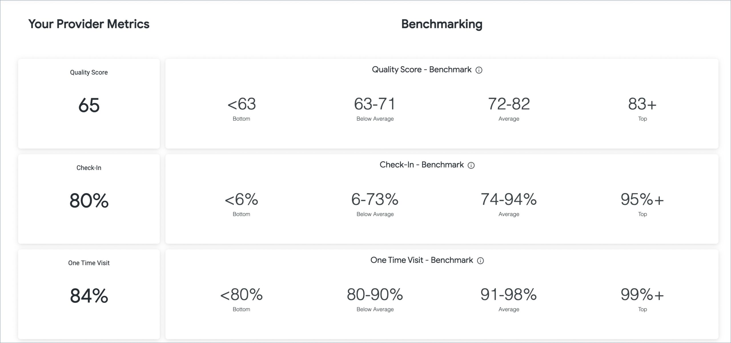 Get a complete view of provider performance over time, from a high-level view of your network down to each individual provider.