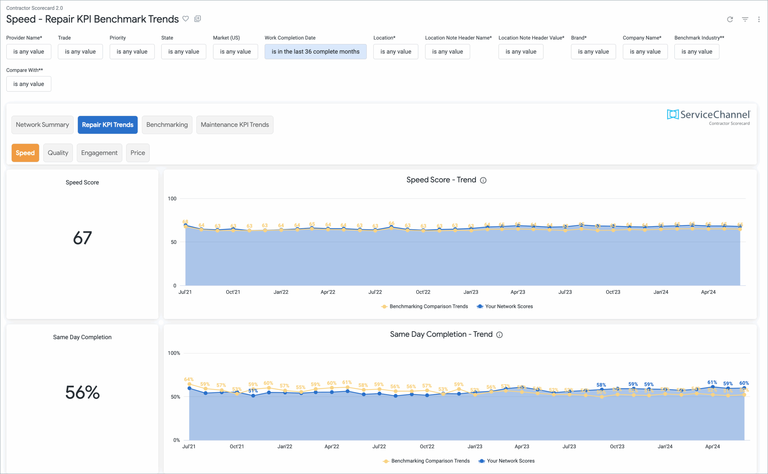 Evaluate providers across quality, speed, engagement, and cost with objective performance data available only on ServiceChannel.