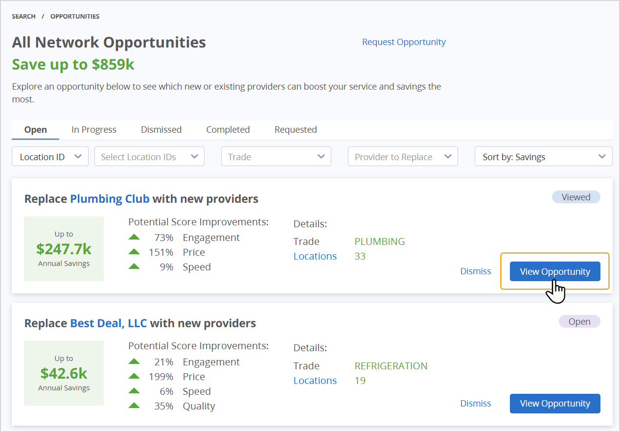 Provider Search makes it easy to search for providers based on trade, location, and performance, delivering results that are relevant to you. Whether you are filling coverage gaps, opening new locations, or replacing existing providers, you’ll spend less time looking — and more time building relationships with the best providers on ServiceChannel.