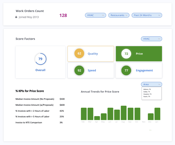 Evaluate providers across quality, speed, engagement, and cost with objective performance data available only on ServiceChannel.